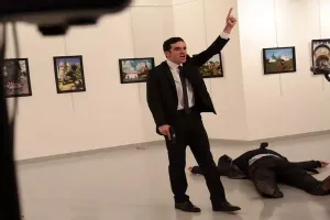ما يثير الجدل هو الهدوء الذي عم المكان بعد مقتل السفير الروسي، بعد أن قام شاب من قوات مكافحة الشغب، ذو 22 عاماً، بعملية الاغتيال هذه، في ظل اجراءات أمنية تعتبر في أوجها على الأراضي التركية، وعلى الرغم من صراخ الشاب لم نرى في التصوير أي صخب او رعب من أحد المتواجدين في المعرض الفني، والأمر الواضح في تلك اللوحة المسرحية أن القاتل كان لديه تأثير سمعي وبصري درب عليه بشكل واضح، ما جذب معظم المشاهدين الى صراخه وهتافاته التي نادت لأجل "حلب"، الذي اعتبره الجميع بطلاً
