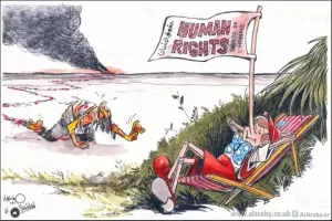 منذ كتابة وثيقة حقوق الإنسان، في أعقاب الحرب العالمية الثانية، والدول الغربية تتغنى بحقوق الإنسان وبدفاعها عنها، بوصفها حقوقاً طبيعية للبشر، يجب الحصول عليها في كل مكان. لكن عند كل اختبار حقيقي لهذه السردية الغربية الكبرى، وادعاءاتها في حماية حقوق الإنسان على مستوى العالم غير الغربي، نصطدم بحقيقة جزئية هذه السردية، وانطباقها على بشر أكثر من بشر، ما جعل التجارب الكثيرة التي مر بها العالم منذ الحرب العالمية الثانية تضع هذه القضية في دائرة الشك في عموميتها على مستوى العالم، ما يجعل حقوق الإنسان مسألةً فيها نظر، بعد كل الحبر الذي سال، والخطابات التي دبجت للدفاع عن هذه القضية.