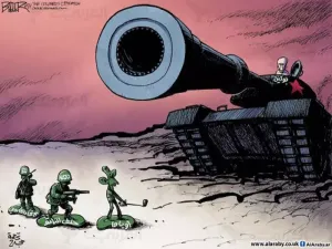 وثالثاً، بوتين هو فعلا وريث الإمبراطورية السوفييتية التي جاء إلى السلطة من رحمها، والذي ما زال يشده الحنين إلى ذلك الزمن، وإلى عظمة السلطة القوية والتوسعية؛ وهو الذي نشأ وترعرع في حضن جهاز الاستخبارات السوفييتية (كي.جي.بي). وهذا النزوع تجسده الأزمة الأوكرانية مثالاً حياً، يجمعه، بطبيعة الحال، مع نموذج الأسد، سلطة قمعية وعقلية هيمنة ووصاية تجاه لبنان وفلسطين والمحيط. ولا بد من القول هنا إن واشنطن والحلف الأطلسي لم يوفرا منذ العام 2000 أي ضغط على موسكو، ولا أي محاولة لمحاصرتها في دول المحيط، منها جمهوريات كانت جزءاً من الاتحاد السوفييتي السابق. ما دفع بوتين إلى العودة إلى أجواء الحرب الباردة، طمعاً بإحياء أمجاد غابرة.