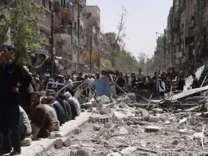 «مدينة أشباح»، هكذا يمكننا أن نصف مخيم اليرموك، أو كما وصفه بان كي مون بأنه دائرة الجحيم، فالسكان المدنيون يعانون أشد المعاناة داخل بيوتهم، ويخشون الخروج إلى الشوارع خوفًا على حياتهم، بينما لجأ الآلاف إلى مناطق مجاورة، ولا يعني هذا سوى أن الفلسطينيين وقعوا بين شقي رحى حرب تدور بدمائهم ودموعهم، فها هي قوات الأسد من جانب، والمسلحون من جانب آخر بما فيهم «داعش»، يسفكون دماء الفلسطينيين.