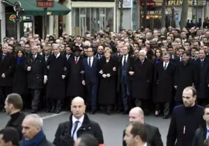 ولا يغيب عن الصورة الجماعية محمود عباس الذي قطع اشواطا ليحضر التظاهرة في حين منع الفلسطينيين من التظاهر للتضامن مع شهداء غزة في لفتة كريمة منه للفرنسيين حكومة وشعبا بحزنه الشديد واسفه بالاصالة عن نفسه وبالنيابة عن الفلسطينيين وتضامنهم مع ضحايا الاعتداء .