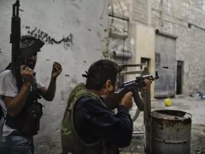 في العام الثاني والثالث دخلت سوريا نفق الحرب مع بروز ظاهرة الجيش الحر. وقد واصلت الثورة مسيرتها بمزيج من السلاح والتظاهرات السلمية، وصولاً إلى اللحظة التاريخية الحرجة حيث سادت لغة السلاح، وحيث تحولت جموع المحتجين السلميين التي ملأت الساحات بتظاهرات شعبية حاشدة في جميع المدن السورية، إلى ثوار مسلحين في كتائب تطورت تدريجياً واشتد عودها حتى باتت مهيمنة بصورة مطلقة.