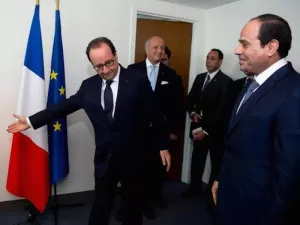 المؤكد أن الرئيس الفرنسي كان مستعداً لمجاملة السيسي على حساب الشعب السوري، ولهذا أكد عند استقباله، على ضرورة التوصل إلى حل سياسي في سوريا حتى «لو كنا مضطرين في البداية الى مكافحة «إرهاب» الدولة الاسلامية». ولا يخفى أن هذا التصريح يطابق إلى حد بعيد طريقة تفكير السيسي، الذي يريد أن يحارب «الإرهاب» في سيناء، وليبيا، والعراق، وسوريا أيضاً، وأعتقد أن شرح معنى كلمة الإرهاب عند السيسي لا يحتاج إلى مجهود كبير، فالمقصود به محاربة رغبة الشعوب العربية في التحرر من نير الدكتاتورية، وهذا ما لا يرضاه الرجل، وما لا ترضاه فرنسا أيضاً، فالتحرر من التسلط يُسقط السيسي وكثيرين مثله كما يعصف بتبعية الدول العربية للغرب والولايات المتحدة.