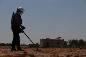 انفجر لغم أرضي من مخلفات الحرب في ناحية جندريس بمحيط عفرين شمال حلب أدى لإستشهاد طفل.