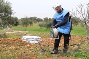 قامت فرقة الهندسة التابعة للجيش الوطني بتفجير لغم أرضي من مخلفات الحرب عبر كاسحة ألغام على أطراف مدينة عفرين بالريف الشمالي.