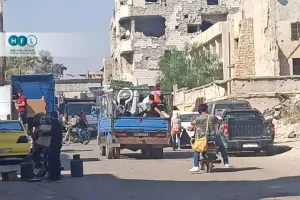 عادد من أهالي درعا البلد النازحين الى منازلهم التي نزحوا منها ظهر اليوم بعد أن فتحت قوات الأسد حاجز السرايا.