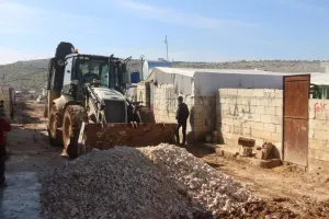 جرفت "قسد" بقالية صغيرة بحجة عدم امتلاك صاحبها رخصة عمل في حي الثكنة بمدينة الرقة.