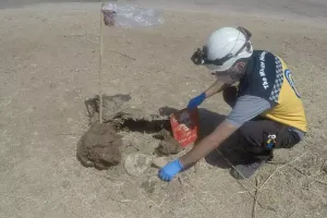 سقط شهيدان وجريح جراء انفجار لغم أرضي من مخلفات قوات الأسد في الأراضي الزراعية لبلدة النيرب.