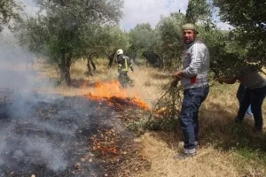 احترقت عدد من المحاصيل الزراعية في محيط بلدة تل تمر بالريف الشمالي.