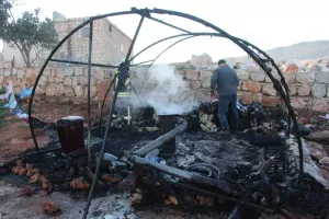 أصيبت طفلتين بحروق إثر احتراق خيمة لأحد النازحين بالقرب من قرية الشيخ بحر.