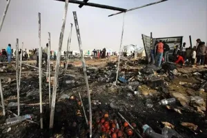 أصيب ثلاثة أشخاص بحالات اختناق، نتيجة اندلاع حريق في مخيم للاجئين السوريين، في البقاع شرق لبنان.