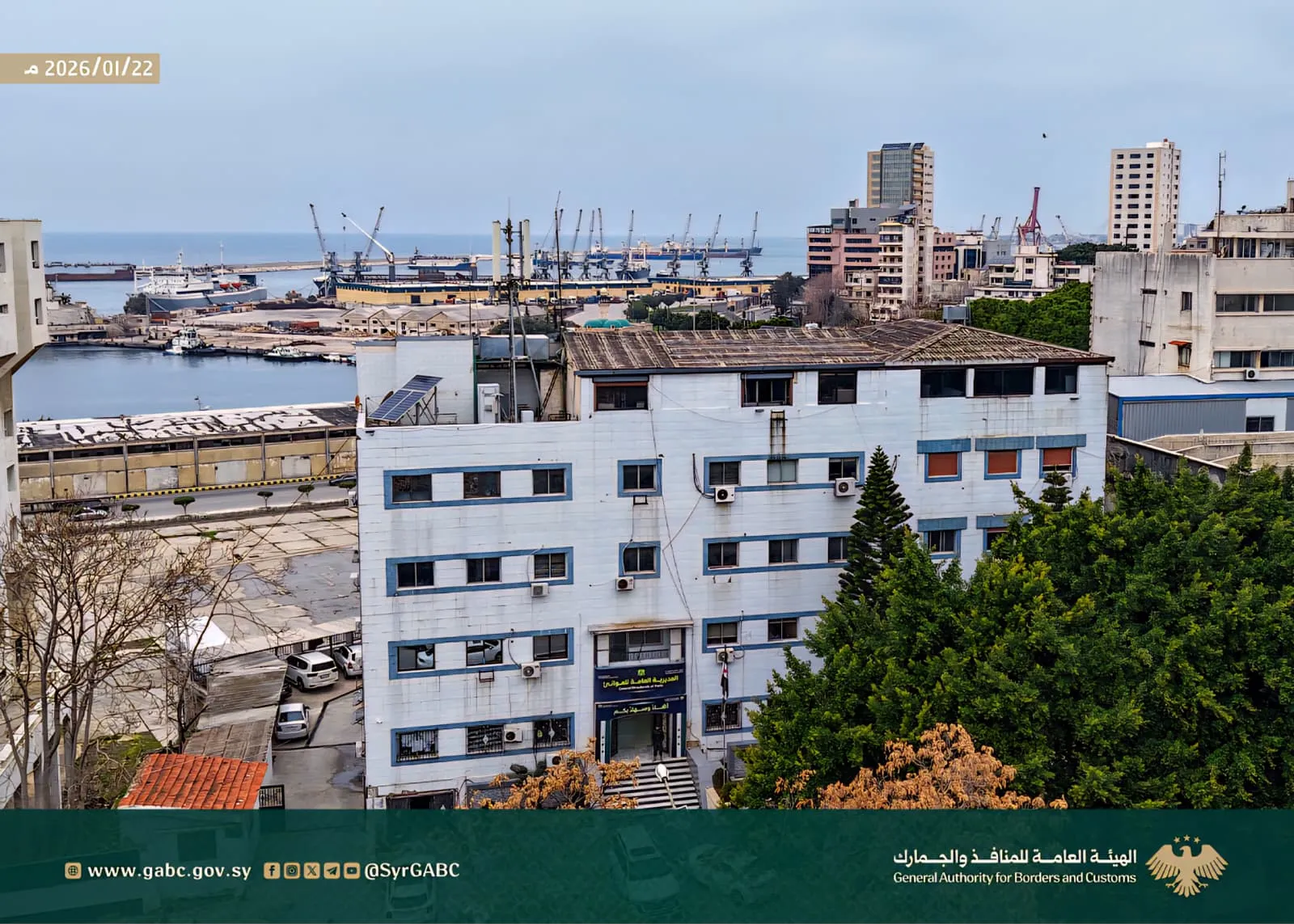 زار رئيس الهيئة العامة للمنافذ والجمارك، "قتيبة بدوي"، برفقة معاونه للشؤون البحرية، "أحمد مصطفى"، المديرية العامة للموانئ في اللاذقية، وذلك في إطار المتابعة الميدانية المباشرة والاطلاع على واقع العمل البحري، وسط الإعلان عن خطط لتحديث الموانئ في اللاذقية.
