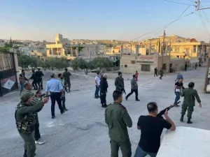 ويزعم النظام بأنّ الانتشار الأمني عبر دوريات المخابرات المشاركة لملاحقة "خارجين عن القانون حاصروا مركز شرطة في البلدة، وقال اللواء "محمود" إن بعد اعتقال "مجرم خطير" قام مسلحون بمحاصرة مبنى للشرطة، مبررا بذلك عملية اقتحام البلدة.