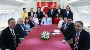 ولفت أردوغان إلى أن "رياح السلام التي ستهب على سوريا، ومناخ السلام الذي سيعم جميع أنحاء سوريا، ضروريان أيضا لعودة ملايين الأشخاص إلى بلدهم"، وكانت ذكرت صحيفة Turkiye مؤخرا "أنه من المحتمل عقد أول لقاء بين أردوغان والأسد منذ 13 عاما في روسيا أو العراق أو إحدى دول الخليج".