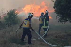 ولفتت المؤسسة إلى اندلاع حريق حراجي محيط قرية الدرية بريف دركوش غربي إدلب، يوم الأحد 30 حزيران، توجهت فرقها على الفور إلى المكان لإخماد الحريق وسط صعوبات كبيرة بسبب طبيعة المنطقة الجبلية وتضاريسها التي تعيق وصول سيارات الإطفاء لبؤر النيران، واشتداد سرعة الرياح.