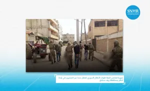 وأوضحت الشبكة أنَّ عملية الاعتقال لم تتم وفقاً لمذكرة قضائية، وهذه قاعدة عامة في الغالبية العظمى من حالات الاعتقال التي تقوم بها قوات النظام السوري، ولم يعلم الأشخاص الذين تم اعتقالهم ماهي التهمة الموجهة إليهم، ومنعوا من التواصل مع أي أحد من ذويهم، وأصبحوا رهائن لها.