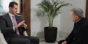 أجرى رأس النظام الإرهابي "بشار الأسد"، مقابلة مع الصحفي الروسي "فلاديمير سولوفيوف"، بثتها وسائل إعلام تابعة للنظام يوم أمس الأحد 3 آذار/ مارس، تطرق خلالها للحرب على غزة، والانتخابات الروسية والأمريكية، والعقوبات، والغرب، والتطبيع العربي، وغيرها من المواضيع، ولم يغب عن حديث رأس النظام المعتاد السماجة وطرح النظريات المقيتة والمحاضرة بالشرف والوطنية والمبادئ.