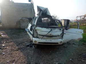 وأصيب مدني نتيجة استهداف طائرة مسيرة انتحارية لقوات النظام سيارة مدنية (صهريج ماء) على الطريق الواصل بين قريتي القرقور وفريكة في ريف إدلب الجنوبي الغربي، يوم الثلاثاء 6 شباط.