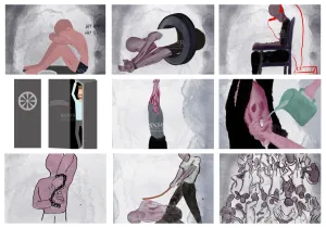 يقوم العنصر المسؤول عن التعذيب بلفِّ ذراع المحتجز اليسرى خلف ظهره من جهة الخاصرة اليسرى، ولفِّ الذراع اليمنى خلف ظهره أيضاً لكن من فوق الكتف الأيمن، وتُسحب الذراعان باتجاه بعضهما البعض وتكبلان بالأصفاد، ويُترك المحتجز مدة ساعة أو أكثر على هذه الوضعية؛ ما يتسبَّب له بآلام مبرحة. أطلق الناجون الذين التقتهم الشبكة السورية لحقوق الإنسان اسم العقرب على هذه الوضعية من التعذيب.