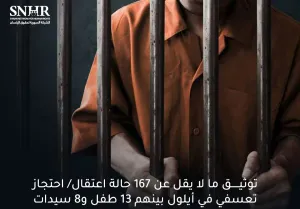 سجَّل التقرير في أيلول ما لا يقل عن 167 حالة اعتقال تعسفي/ احتجاز بينها 13 طفلاً و8 سيدات، وقد تحوَّل 119 منها إلى حالات اختفاء قسري. كانت 76 منها على يد قوات النظام السوري، و49 بينهم 6 أطفال على يد قوات سوريا الديمقراطية. فيما سجَّل التقرير 31 بينهم 2 سيدات على يد جميع فصائل المعارضة المسلحة/ الجيش الوطني، و11 بينهم 3 أطفال على يد هيئة تحرير الشام.