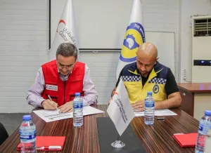 ووقع مذكرة التفاهم كل من مازن عبد الله محمد مدير مكتب الهلال الأحمر القطري في تركيا، ورائد الصالح مدير الدفاع المدني السوري، وتنص المذكرة على التعاون بين الطرفين في مجالات التوعية، والمشاركة في الأنشطة العامة والإدارية، وعمليات المسح غير التقني للمناطق والمجتمعات المحلية.