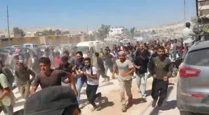 واجهت عناصر أمنية تابعة لـ "هيئة تحرير الشام"، اليوم الاثنين 12/ أيلول/ 2022، المئات من الشبان المجتمعين في منطقة باب الهوى بريف إدلب الشمالي، بالهراوات وقامت بضرب عدد منهم بينهم ناشط إعلامي، بعد تجمعهم تلبية لدعوات تنظيم ما يسمي بـ"قافلة السلام"، بهدف اجتياز الحدود مع تركيا و الوصول للدول الأوربية.