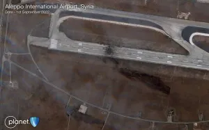 وكانت كشفت صورة أقمار صناعية، التقطتها شركة "بلانيت لابز" الأميركية وقدمتها "أورورا إنتل" وهي شبكة توفر تحديثات وأخبار من مصادر مفتوحة، الأضرار التي لحقت بمطار حلب الدولي، بعد أن تعرض لغارة جوية إسرائيلية، تظهر خروج أحد المدرجات في المطار عن الخدمة.