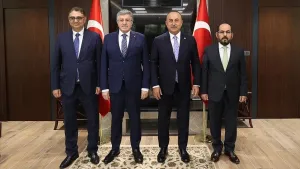 وقالت وكالة "الأناضول" التركية، إن وزير الخارجية التركي مولود تشاووش أوغلو، التقى الأربعاء، قادة المعارضة السورية في مقر الوزارة بالعاصمة أنقرة، ضم الوفد كلاً "رئيس الائتلاف الوطني سالم المسلط، ورئيس هيئة التفاوض بدر جاموس، ورئيس الحكومة المؤقتة عبد الرحمن مصطفى".