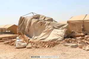 ولفت الفريق إلى توثيق تضرر أكثر من تسعة مخيمات في ريف إدلب الشمالي بأضرار متفاوتة، تراوحت بين تهدم الخيام واقتلاع الآخر، إضافة إلى أضرار ضمن المواد الداخلية ضمن الخيم.