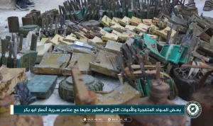 هذا ونشر "الأمن العام"، التابع لـ "تحرير الشام"، صورا تظهر "بعض المواد المتفجرة والأدوات التي تم العثور عليها مع عناصر السرية"، يضاف لذلك صورا لـ"قيادات خلية ما يسمى "سرية أنصار أبي بكر" المتورطة بعدة عمليات إجرامية في المحرر"، وفق نص البيان.