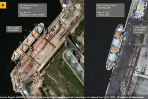 وأظهرت صور "ماكسار" رسو سفينتي نقل بضائع سائبة ترفعان العلم الروسي في ميناء سيفاستوبول الذي تسيطر عليه روسيا في شبه جزيرة القرم في مايو وتحميلهما بالحبوب، وفق الشركة.