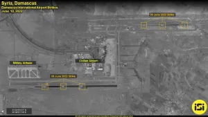 كشفت صور جوية نشرتها شركة الأقمار الصناعية "ImageSat International (ISI)"، عن حجم الأضرار التي لحقت بمدرج مطار دمشق الدولي، بعد تعرضه لغارات إسرائيلية يوم أمس، وأكدت الشرطة أن الغارة الإسرائيلية "عطلت المطار بالكامل".
