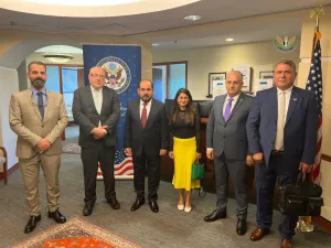 بالإضافة إلى مسؤولين من البيت الأبيض ووزارتي الخارجية والدفاع، ودار النقاش حول سبل دعم الاستقرار في المناطق المحررة ودعم مؤسسات الحكومة السورية المؤقتة بالإضافة إلى المواضيع المتعلقة بمكافحة الإرهاب والمخدرات.