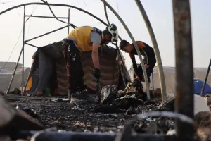 ووفق الفريق فقد تضرر أكثر من 17 مخيماً نتيجة تساقط الشظايا على العديد من الخيم الموجودة في المنطقة مسببة احتراق أكثر من 19 خيمة ومسكن مؤقت ضمن تلك المخيمات، وسقوط ضحايا وإصابات بين المدنيين.