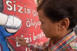 و "محمد نور عزيز الأسمر"، طفل يبلغ من العمر 13 عاماً، من بلدة بنش في محافظة إدلب، منذ سنوات حمل محمد على عاتقه مسؤولية مناصرة الأطفال أمثاله، فانخرط في نشاطات فنية وفعاليات مجتمعية موجهة للأطفال، كان عبرها يشارك أقرانه ما يتقنه من مواهب من رسم، وحساب ذهني وغير ذلك، وكان من أبرز تلك الأنشطة مشاركته بإشراف والده الفنان عمر عزيز في رسم لوحات "غرافيتي" على ركام الأبنية المدمرة، بما في ذلك المدارس، ضمن حملات يشارك فيها الأطفال.
