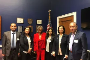 كما تم التطرق لمسائل عديدة هامة تتعلق بالشأن السوري وسبل التوصل إلى حل سياسي للأزمة المستمرة من أكثر من عقد من الزمن"، وأشار إلى لقاءات أخرى مع أعضاء بارزين في الكونغرس الأميركي كالنائب شنايدر العضو في لجنة الشؤون الخارجية بمجلس النواب والذي يعمل في اللجنة الفرعية للشرق الأوسط وشمال أفريقيا ومكافحة الإرهاب العالمي.