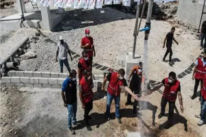 وقال مراسل وكالة الأناضول التركية إن الهلال الأحمر قام ببناء خزان ماء لتلبية احتياجات 2600 عائلة تعيش في مخيمات "مشهد روحين" بريف إدلب الشمالي.