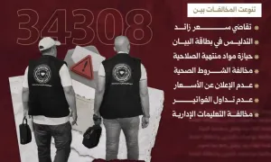وأوضحت الوزارة، في "إنفوغرافيك" نشرته عبر معرفاتها الرسمية، أن إجمالي المخالفات توزّع بين 27 ألفاً و996 ضبطاً منظّماً و12 ألفاً و702 دورية رقابية، فيما أُحيل 81 ملفاً منها إلى القضاء، وأُغلِق 380 محلاً تجارياً ارتكب أصحابها مخالفات جسيمة تستوجب الإغلاق.