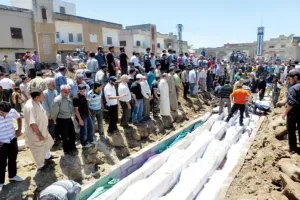 قال الائتلاف الوطني إن الذكرى الثامنة تمر يوم غد على ارتكاب قوات النظام وعناصر الشبيحة الطائفية الحاقدة التابعة لها لمذبحة رهيبة في منطقة الحولة بريف حمص راح ضحيتها 108 من المدنيين غالبيتهم من النساء والأطفال.