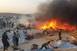 وسجل خلال الأيام الماضية، اندلاع العديد من الحرائق في مخيمات النازحين آخرها في مخيم الصدقة بدير حسان، ومخيمات أخرى خلال الأيام الماضية، بسبب ارتفاع درجات الحرارة، واستخدام وقود لطهي الطعام وكثير من المشكلات التي تؤرقهم وتزيد معاناتهم.