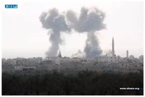 وقال نشطاء في المنطقة، إن بلدات وقرى المسطومة والنيرب ومنطقة معسكر القرميد وقميناس وآفس تشهد قصف جوي عنيف ومركز من الطيران الحربي الروسي وطيران النظام، تزامناً مع قصف عنيف من راجمات الصواريخ على المنطقة بمعدل كل دقيقة أربع صواريخ.