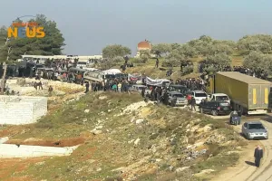 تظاهر المئات من المدنيين من النازحين لمناطق شمال إدلب اليوم الأحد، أمام الجدار العازل على الحدود السورية التركية في منطقة مطلة على مدينة الريحانية التركية من جهة ريف حارم بريف إدلب الغربي تحت عنوان "من إدلب إلى برلين" للفت الانتباه لحرب الإبادة التي تواجههم في مناطقهم.