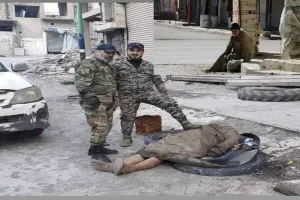 وتداولت مواقع إعلام موالية للنظام صوراً لعناصر يدوسون جثة رجل بعد تصفيته في أحد شوارع مدينة معرة النعمان بريف إدلب، تبين أنها تعود للمسن "أحمد جفال" من أبناء المدينة وهو رجل مريض.