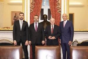 كما اجتمع مع عضو مجلس الشيوخ الأميركي كريس فان هولن بحضور المبعوث الأميركي الخاص توماس باراك، وتمت مناقشة آليات توسيع التعاون بين البلدين.