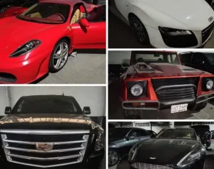 أبرز السيارات التي طرحت في المزاد هي "فيراري F50" والتي يقدر سعرها بنحو 3 ملايين دولار، وهي من النسخ النادرة إذ لم يُصنع منها سوى 349 سيارة، كذلك سيارة فيراري F12 Berlinetta التي تصل قيمتها إلى نحو 2 مليون دولار، وسيارة لامبورغيني مورسيلاغو تقدر قيمتها بمليون دولار تقريباً، وسيارة أستون مارتن والتي تراوحت قيمتها بين 1 و1.5 مليون دولار.