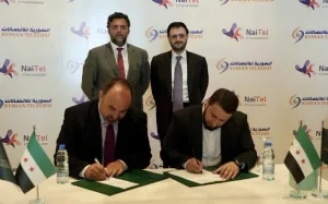 ووقّعت الشركة السورية للاتصالات يوم الاثنين 25 آب/ أغسطس، مذكرة تفاهم مع مجموعة العقبة الرقمية الأردنية بهدف تطوير البنية التحتية الرقمية في سوريا، وذلك في فندق الفورسيزنز بدمشق.