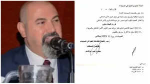 أعلنت ما يسمى "اللجنة القانونية العليا" في السويداء عن تعيين القاضي "شادي فايز مرشد" قائداً لقوى الأمن الداخلي في المحافظة، بموجب القرار رقم 5، وذلك بعد اعتذار العميد "شكيب أجود نصر" عن متابعة مهمته كقائد للأمن الداخلي، وفق ما جاء في نص القرار الذي حمل توقيع رئيس اللجنة، القاضي المستشار مهند أبو فاعور.