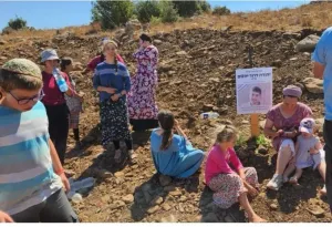 وحسب ما نشرته الجهة التي تُطلق على نفسها اسم “حالوتسي هباشان” (أي: طلائع الباشان)، شاركت عائلات وأبناء شبيبة في مراسم وضع حجر الأساس للمستوطنة الجديدة. وخلال المراسم أقامت عائلة جندي في جيش الاحتلال الإسرائيلي يُدعى يهودا درور يهلوم، كان يخدم في وحدة غولاني وسقط في معركة بجنوب لبنان، زاوية تذكارية له في المستوطنة وزرعت الزهور تخليداً لذكراه.
