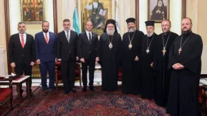 استقبل بطريرك أنطاكية وسائر المشرق للروم الأرثوذكس، يوحنا العاشر، مساء الأربعاء، الأمين العام لرئاسة الجمهورية ماهر الشرع ممثلاً لرئيس البلاد، على رأس وفد ضم معاون أمين الرئاسة لشؤون مجلس الوزراء علي كده، ووزير الإعلام حمزة مصطفى، وعضو اللجنة العليا لانتخابات مجلس الشعب حسن دغيم.