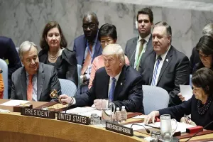 وكان الرئيس الأمريكي ترامب، شن هجومًا حادًا على إيران، واتهمها بـ"تصدير الإرهاب والعنف والدمار، وشراء مواد حساسة بشكل غير مشروع، في إطار دعم برنامجها للصواريخ البالستية ونشرها في جميع أنحاء الشرق الأوسط"، كما أكد أن "سفك الدماء الذي يقوم به النظام السوري يلقى دعمًا من إيران وروسيا"، في كلمته خلال جلسة لمجلس الأمن يوم أمس.